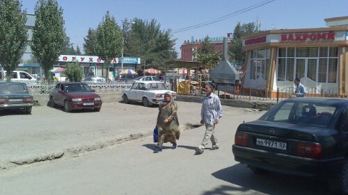 Stadt auf ca. 1000m Höhe an der Fernstraße nach Duschanbe. Die Fahrt von Isfara hierher erfolgte mit Marschrutka über Chudschand, wobei der Transfer zwischen den beiden, einige Kilometer voneinander entfernten Автовоксал wie so oft mehr gekostet hat, als jede der beiden Fernstrecken. Die Straße zwischen Chudschand und Istarafschan ist neu und in sehr gutem Zustand (chinesische Mauthäuschen an beiden Enden). Normale PKW-Taxi fahren bis Duschanbe; die alte M34 scheint also jetzt endlich ihren Zweck, Nord- und Südtadschikistan zu verbinden, zu erfüllen.