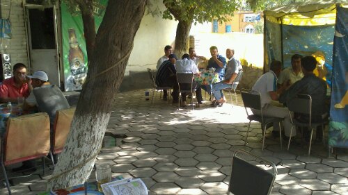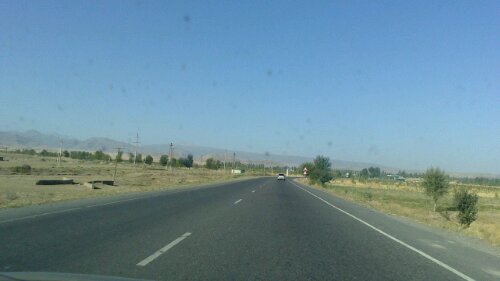 Heute früh Ausflug 30km nach Süden; zunächst nach S., von dort mit Chartertaxi nach Jarkutan (Чаркутан – habe herade keinen tadschikischen Zeichensatz), wo ich eine sogdische Zitadelle aus dem 4.-6. Jhd. suche. Hauptschwierigkeit ist wie fast immer, mich verständlich zu machen. Nach einigen Mühen finde ich sie mithilfe der Wegbeschreibung in einem Reiseführer selber. Dort ist von einer Asphaltstraße die Rede, wovon aber nicht einmal mehr Spuren zu erkennen sind.