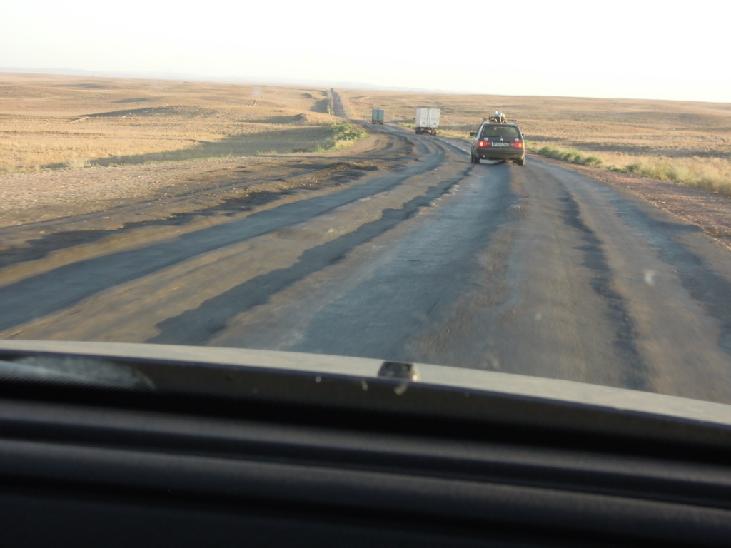 Wir fuhren 200km am 400km langen Balkaschsee entlang. Überall an der Straße wurden geräucherte Fische angeboten. Dominic und Scholz fuhren zu schnell (40 km/h); die Polizeikontrolle verlangte insgesamt 150€. Dominic und Scholz gelang es in Zusammenarbeit, die Strafe auf 0 zu reduzieren. Sie jammerten so, daß die Polizisten ihnen fast noch was geschenkt hätten.
