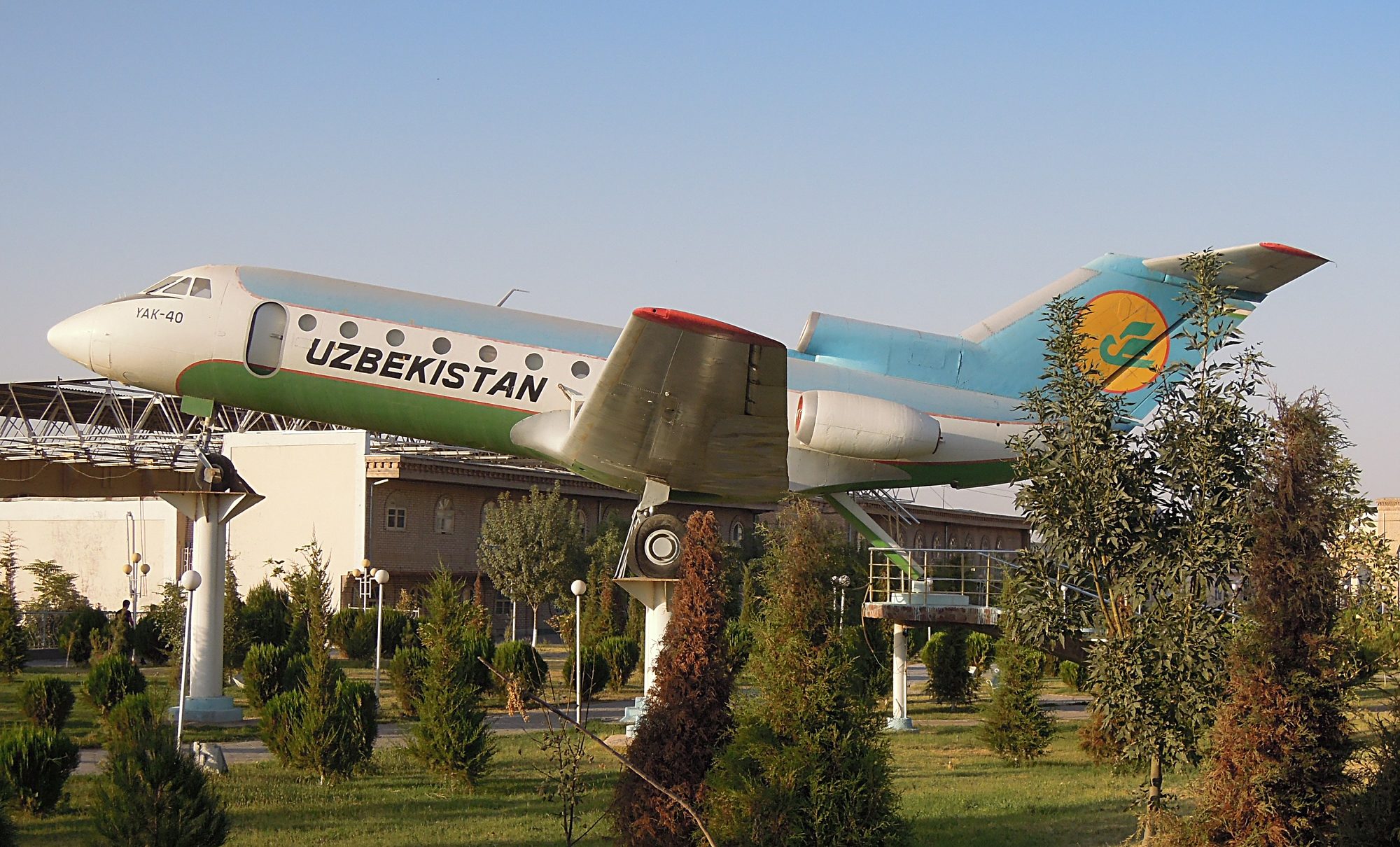 Eine ausgemusterte Як-40 (Jak-40) im Stadtpark von Qarshi (Қарши).